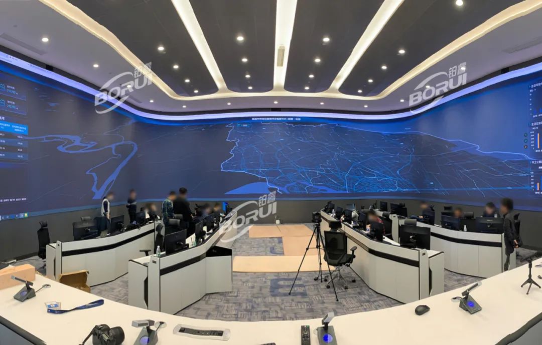 總面積超過(guò)120m2的雙邊90度U型BORUI玻顯投影大屏